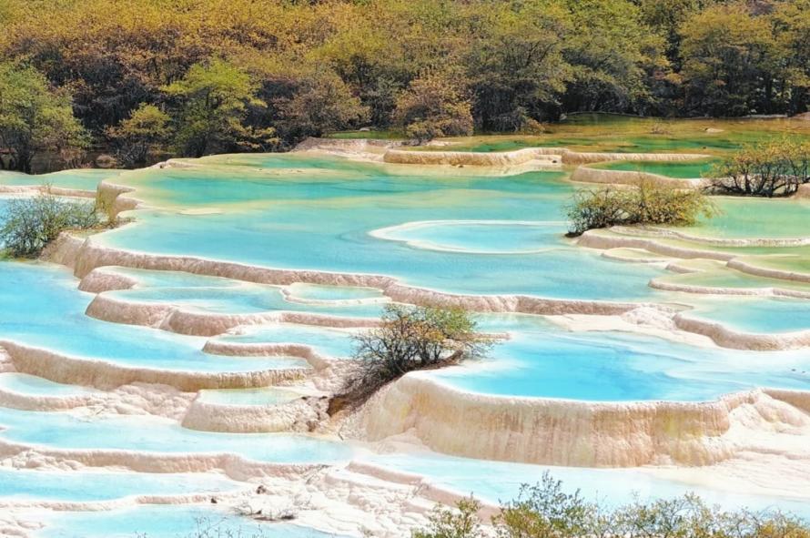 Visit the essence of Huanglong Scenic Area, focus on core landscapes such as Five-Colored Pond and Huanglong Ancient Temple, where the calcified beaches and streams spread like terraced fields, matched with the plateau blue sky, to unlock the shocking visual experience of the "Fairyland on Earth".